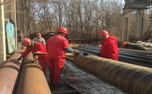 3、材料使用,采取纏繞方法進行。粘彈體防腐帶軸向搭接≥10mm,粘彈體防腐帶始末兩端搭接長度≥50mm,粘彈體防腐帶與管體原防腐層搭接≥50mm;聚丙烯防腐膠帶軸向搭接(膠帶寬度)≥50%,兩端包覆粘彈體防腐帶防腐層各100mm。