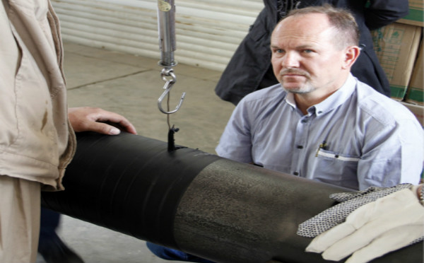 涂刷防腐膠帶配套底漆一遍+聚乙烯膠帶分別選用0.5mm或0.6mm內(nèi)帶和外帶各以50~55%搭接繞帶,各有兩層來完成防腐層厚度≥2.0mm。