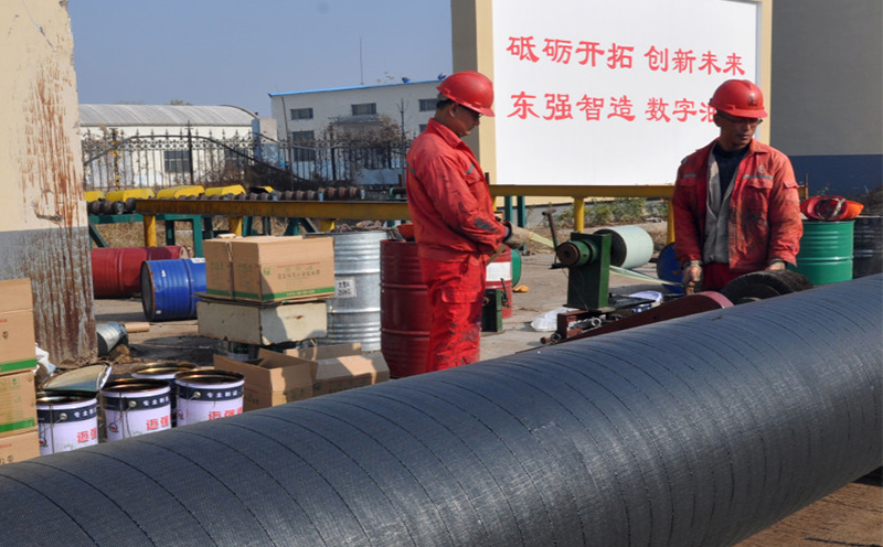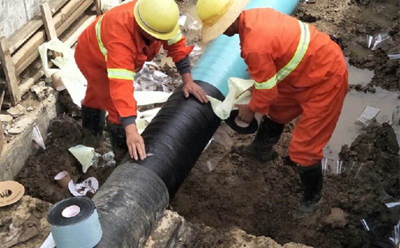 3、底漆涂刷5-10分鐘表干后即可纏帶。施工過(guò)程中要增大聚丙烯防腐膠帶的平衡漲力,達(dá)到緊貼于作業(yè)面,實(shí)現(xiàn)包平無(wú)空隙、無(wú)皺折效果。