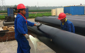該項(xiàng)指標(biāo)主要控制施工時(shí)的缺陷或膠帶存在的某些缺陷, 必須對(duì)管道進(jìn)行全線檢查。檢漏電壓與石油瀝青檢漏公式相同。檢漏儀移動(dòng)速度不超過(guò)0.3m/s,對(duì)所有放電處應(yīng)作記號(hào),并用膠帶修補(bǔ)。對(duì)檢測(cè)結(jié)果應(yīng)做好記錄,內(nèi)容包括缺陷形狀,性質(zhì)及位置,修補(bǔ)工藝等,作為管道竣工資料。